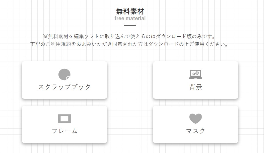 こちらのページで素材をダウンロードしてソフトに取り込むと、編集画面で使用することができるんです!