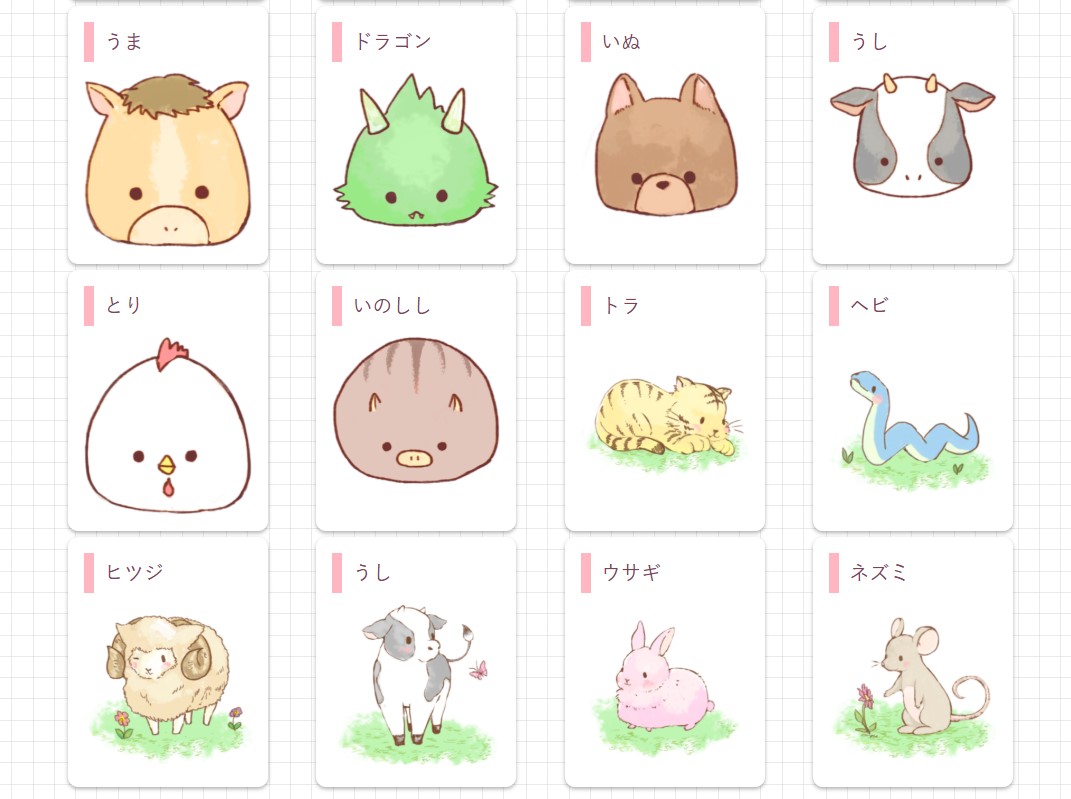 そしてこちらが無料素材の一部の干支の素材。とてもかわいらしいのでおすすめです(^^)/