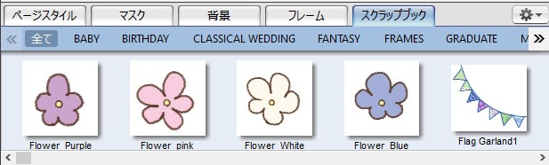 なかでもスクラップブック機能はシール感覚でぺたぺたと自由に素材を配置することができるので、ご利用していただいている方も多いのではないでしょうか。